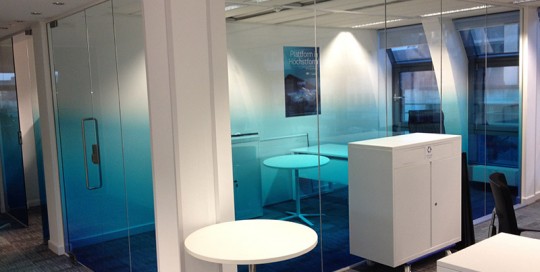 Lee Solomon 2018-03-28T17:33:08+01:00Project Summary A client of ours approached us to produce a customised tinted window effect for their client who have offices throughout Europe. To create the desired effect we printed onto clear optical film, creating a fading cyan tint. We then laminated this with a scratch proof film - providing longevity for the [...]